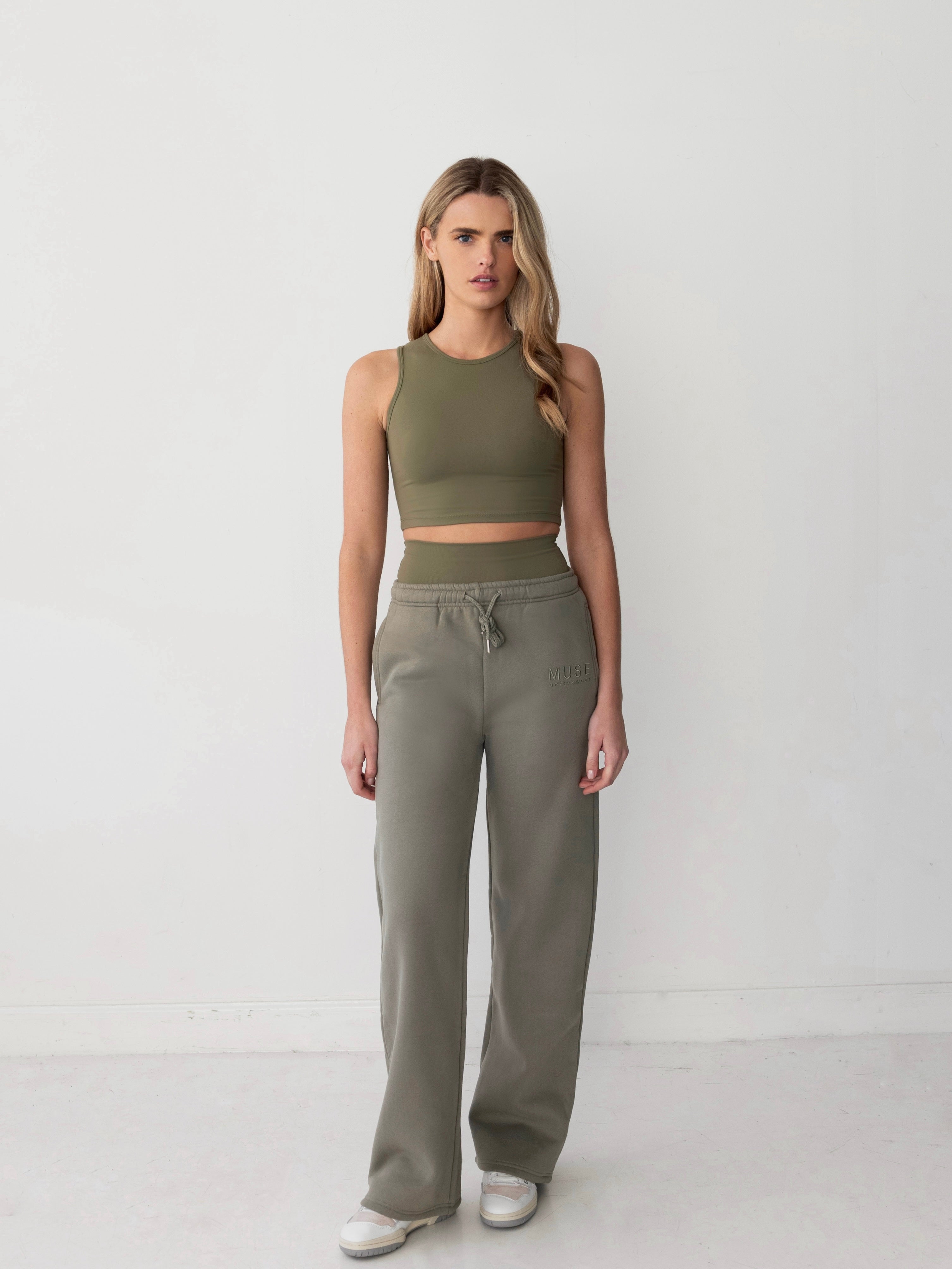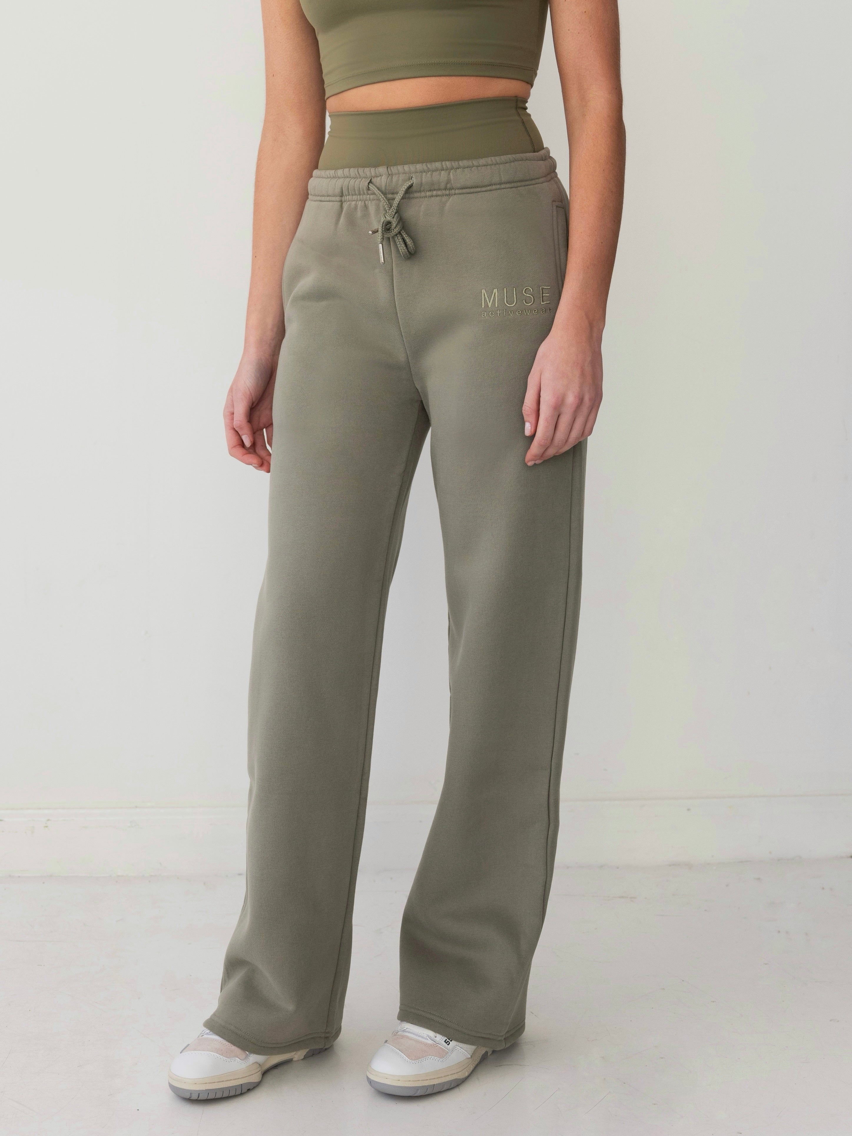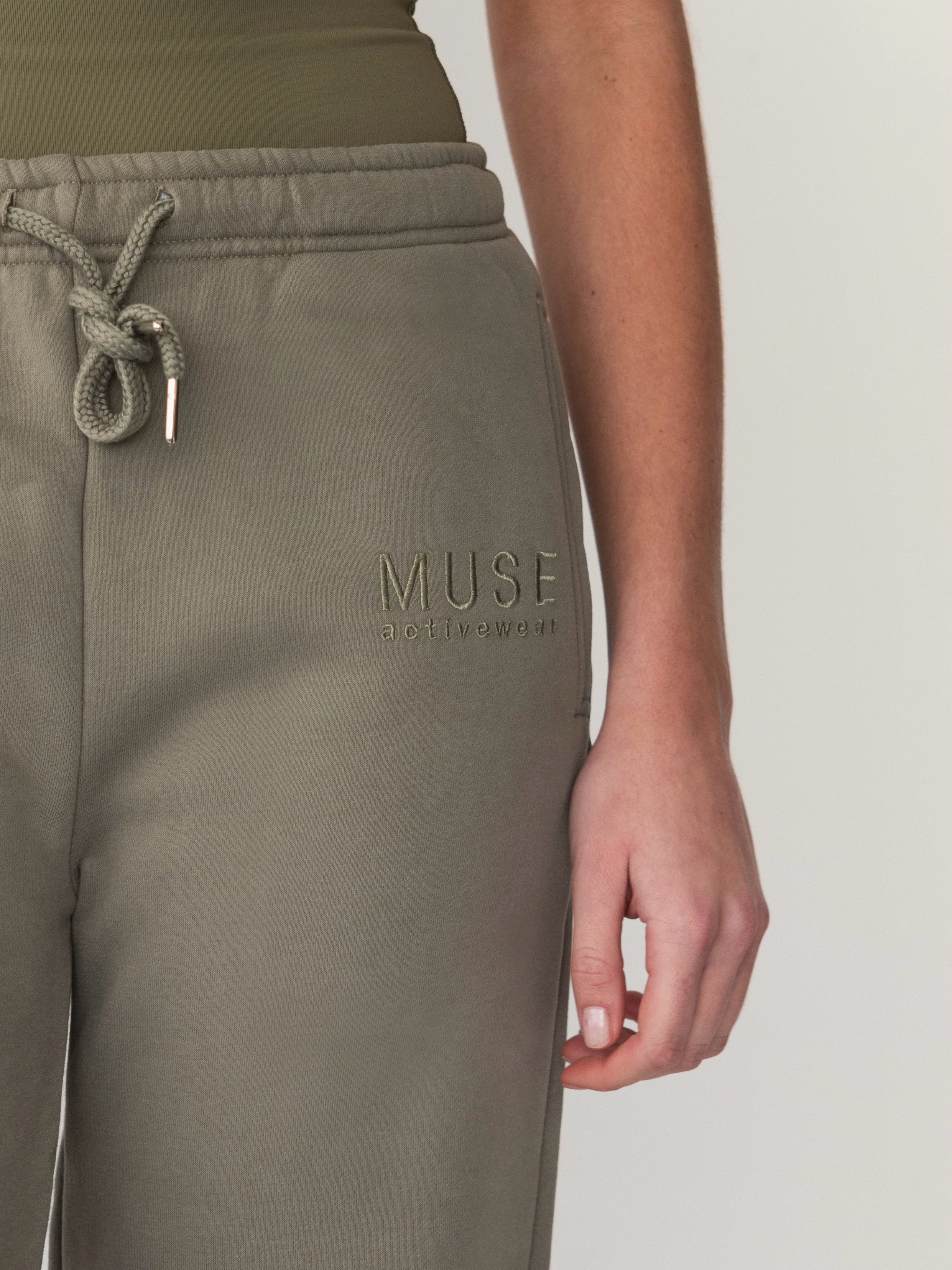 ANOTHER MUSE KEY PRODUCT OFFERING COMFORT IN THE PERFECT JOGGER. CREATED IN A SUPER SOFT COTTON SWEAT FABRIC WITH A CUFFED WAIST LINE AND STRAIGHT LEG STYLE, THE OLIVE JOGGER OFFERS A RELAXED FIT TEAMED WITH OUR OLIVE ZIPPER HOODIE.